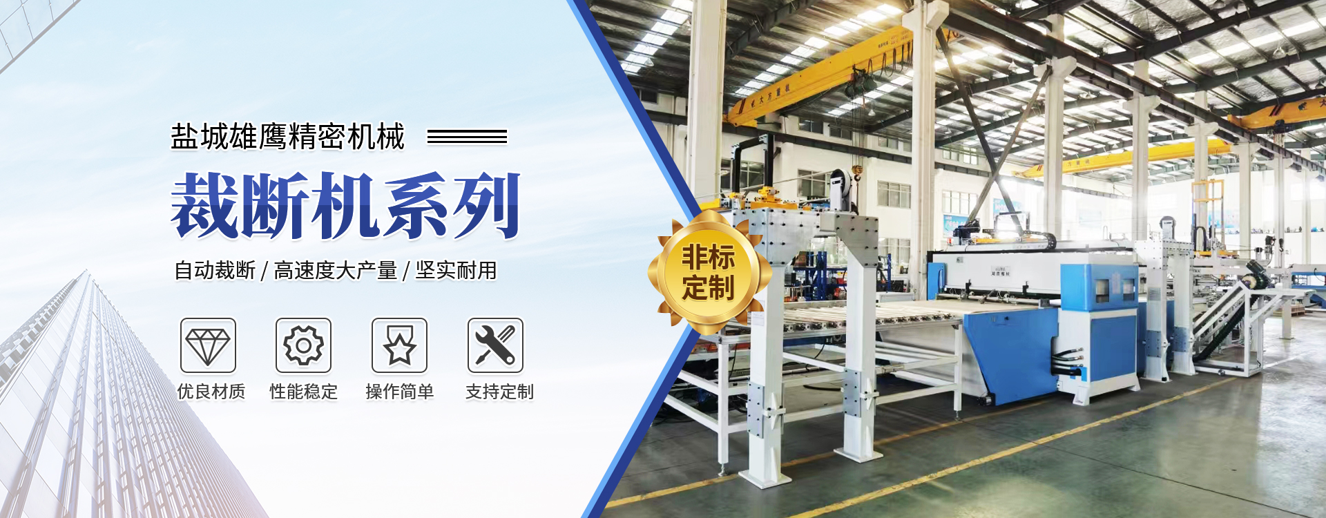 - 主營:"超鷹"牌液壓擺臂下料機(jī)、隨動式液壓擺臂下料機(jī)、液壓平面下料機(jī)、液壓龍門下料機(jī)、(旋轉(zhuǎn)頭)自動送料精密四柱液壓龍門下料機(jī)、四柱(精密四柱)液壓平面下料機(jī)、上壓板自動后移精密四柱液壓平面下料機(jī)等系列產(chǎn)品。